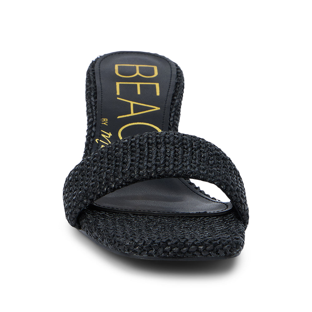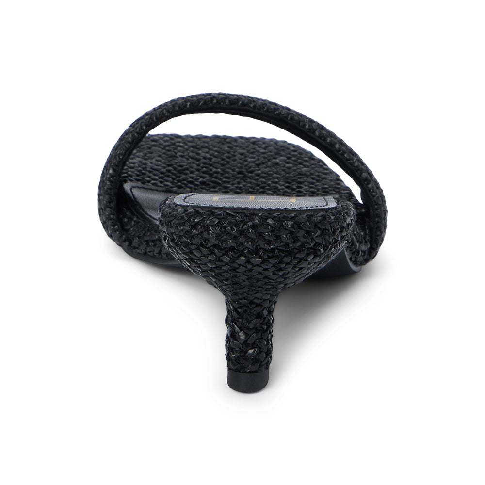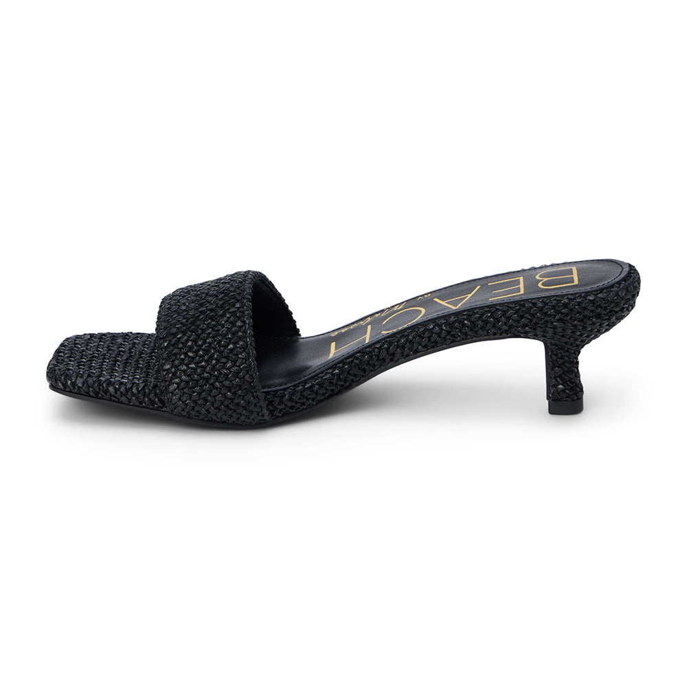 Vegan, single band kitten heel sandal.