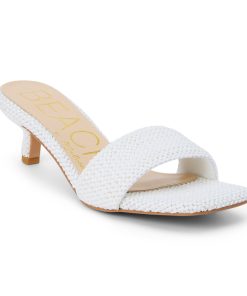 Vegan, single band kitten heel sandal.