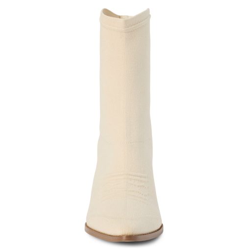 Western-inspired stretch knit ankle boot.