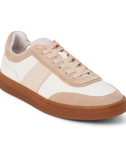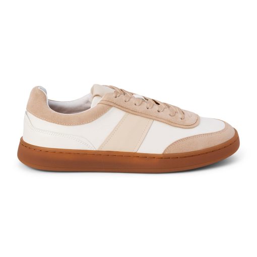 Retro-inspired mixed material low-top sneaker.